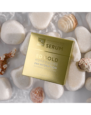 В основе препарата — гиалуроновая кислота, пять видов пептидов, ниацинамид и коллоидное золото. Каждый компонент отвечает за свой «участок работы», а также дополняет действие остальных активов.