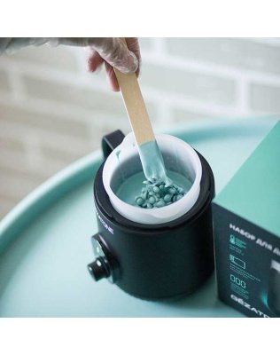 • Это не просто воскоплав, а стартовый набор, позволяющий сразу приступить к выполнению депиляции: в комплект входит пленочный воск в гранулах с маслом Ши и деревянные шпатели.