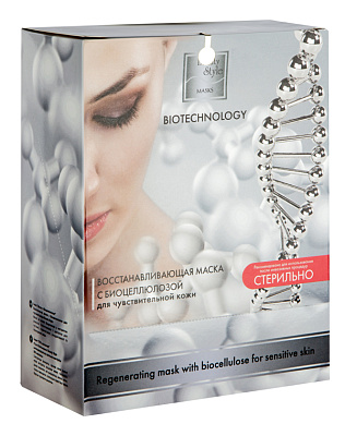 Маска, созданная с использованием нанотехнологий из натуральной биоцеллюлозы, предназначена для чувствительной и гиперчувствительной кожи.