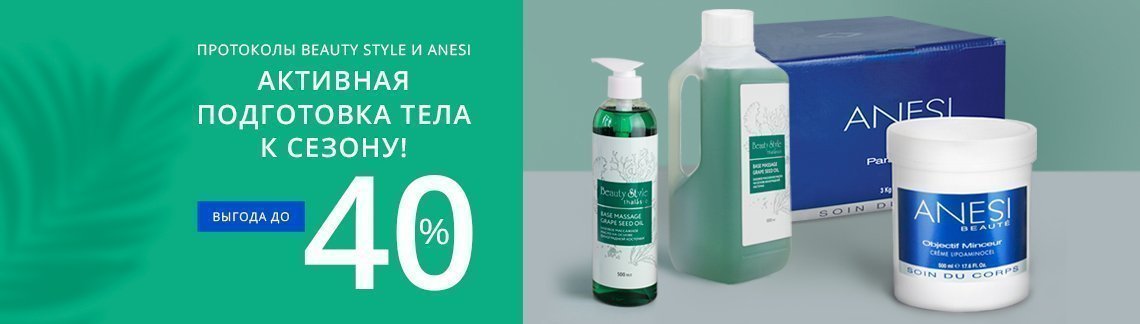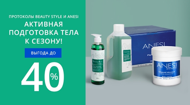 Активная подготовка тела к сезону! Протоколы ANESI и BEAUTY STYLE с выгодой до 40% Активная подготовка тела к сезону! Протоколы ANESI и BEAUTY STYLE с выгодой до 40%