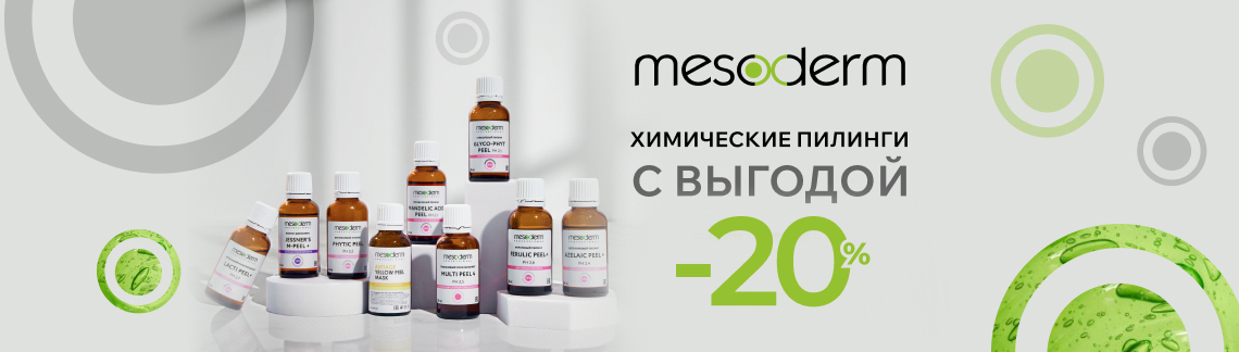 Только сейчас химические пилинги Mesoderm доступны со скидкой 20% — отличное время пополнить ассортимент и запланировать курсы процедур.