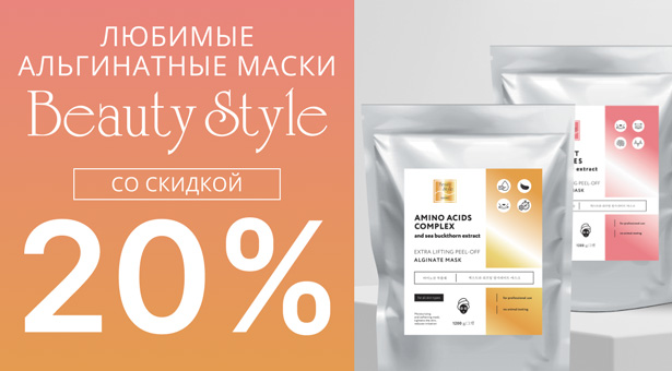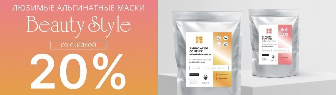 Не пропустите скидку 20%! Ваши любимые альгинаты Beauty Stylе на время становятся еще выгоднее. Мощная минерализация и усиленная гидратация кожи, помощь в решении разнообразных эстетических задач и великолепная пластификация. Еще больше вашей выгоды при заказе прямо сейчас.