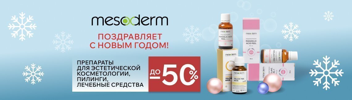 MESODERM поздравляет с Новым годом! Скидки до 50% на все пилинги и препараты для эстетической косметологии MESODERM поздравляет с Новым годом! Скидки до 50% на все пилинги и препараты для эстетической косметологии