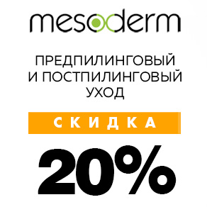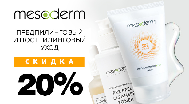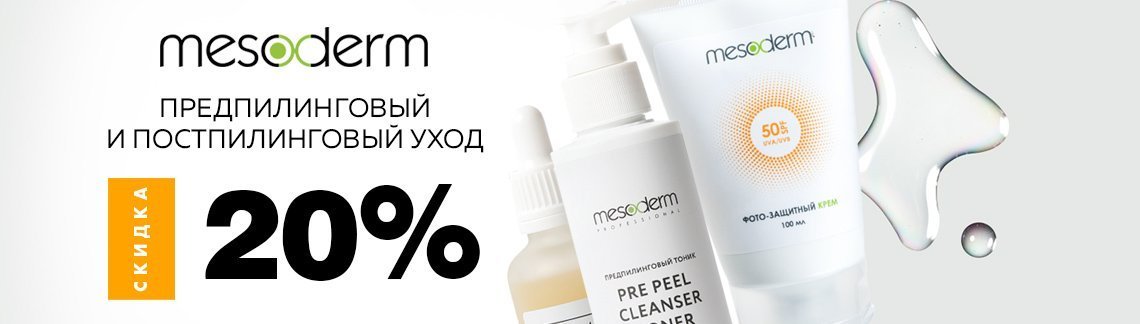 Предпилинговые и постпилинговые препараты со скидкой 20% до конца месяца! Не пропустите выгодное предложение, ведь с MESODERM сезон пилингов длится круглый год.
