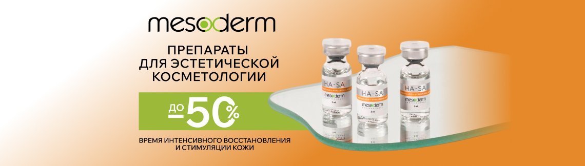 Решите разом все проблемы ваших клиентов! Препараты для увлажнения и лифтинга кожи, устранения морщин и пигментации, а также для укрепления волос MESODERM прямо сейчас со скидками до 50%.