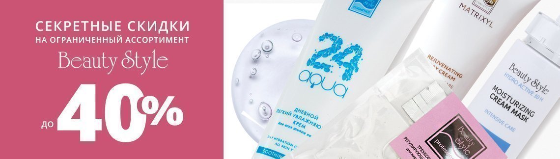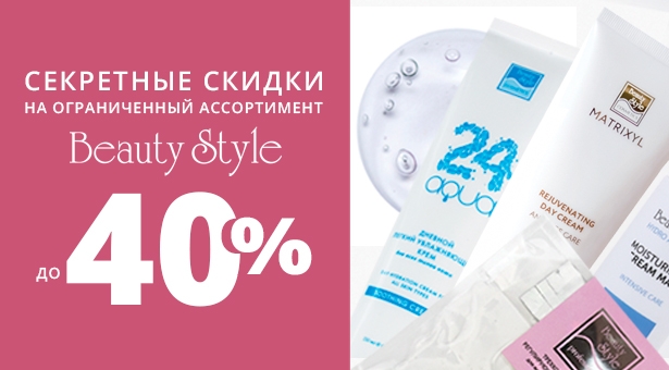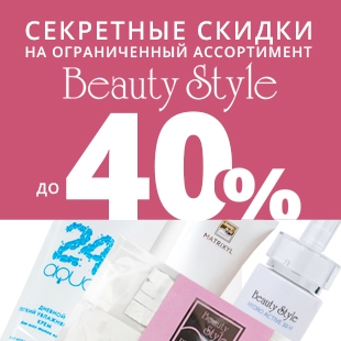 Секретные скидки до 40% на ограниченный ассортимент BEAUTY STYLE Секретные скидки до 40% на ограниченный ассортимент BEAUTY STYLE
