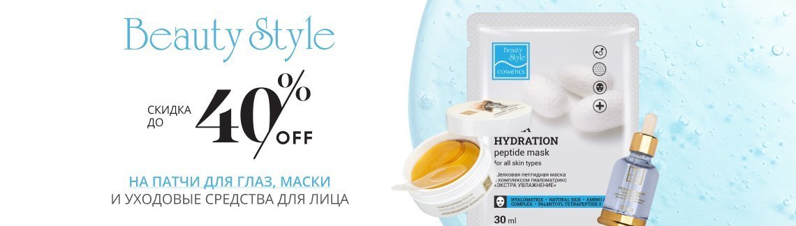 Скидка до 40% на патчи для глаз, маски и уходовые средства для лица Beauty Style Скидка до 40% на патчи для глаз, маски и уходовые средства для лица Beauty Style