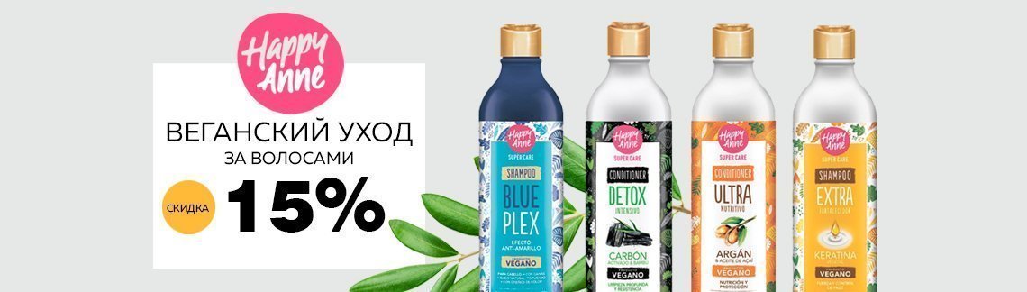 Веганский уход за волосами HAPPY ANNE + Скидка 15% Веганский уход за волосами HAPPY ANNE + Скидка 15%