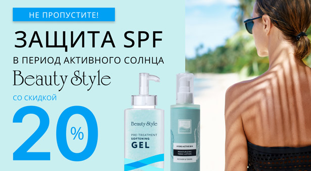 Защита SPF от Beauty Style в период активного солнца со скидкой 20%. Не пропустите!